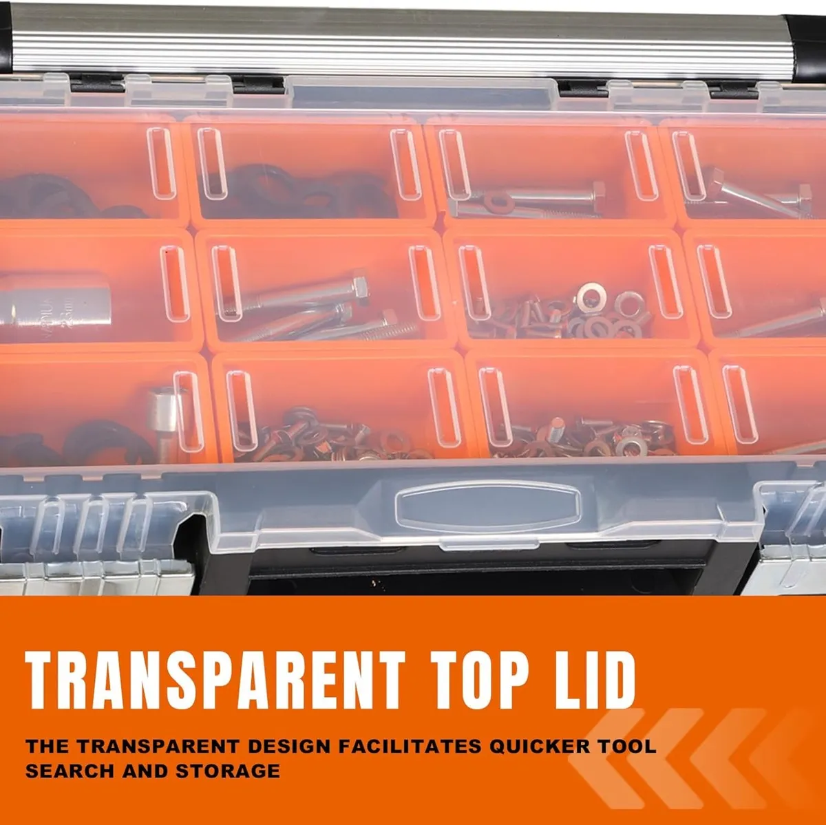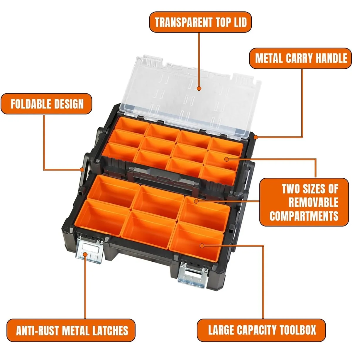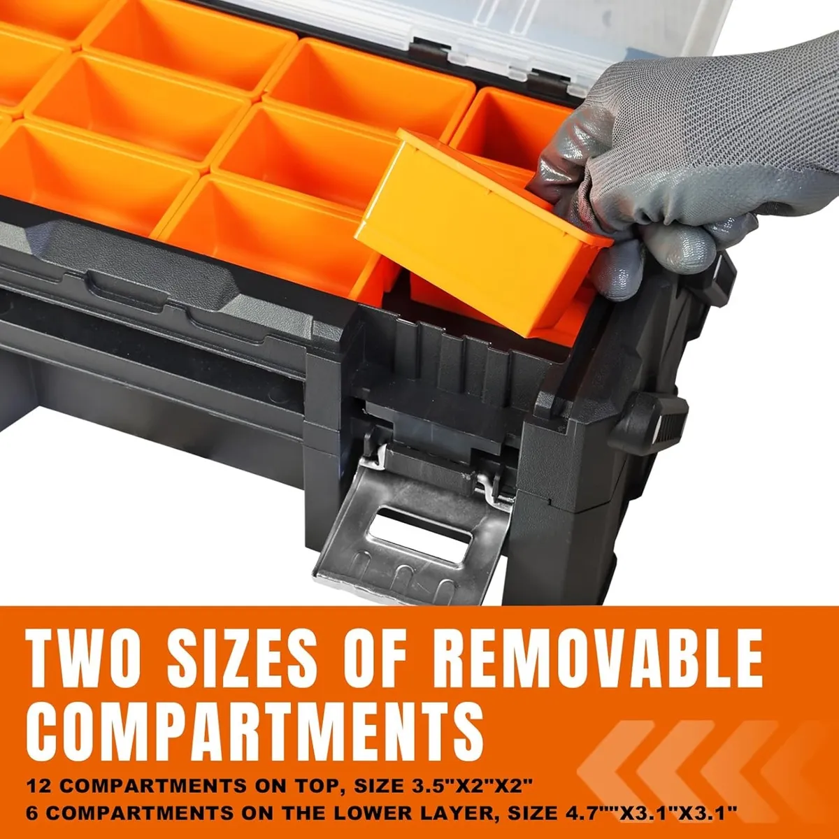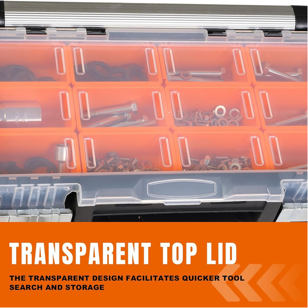 • Removable Dividers – Customize compartments to suit tools, screws, nails, and parts