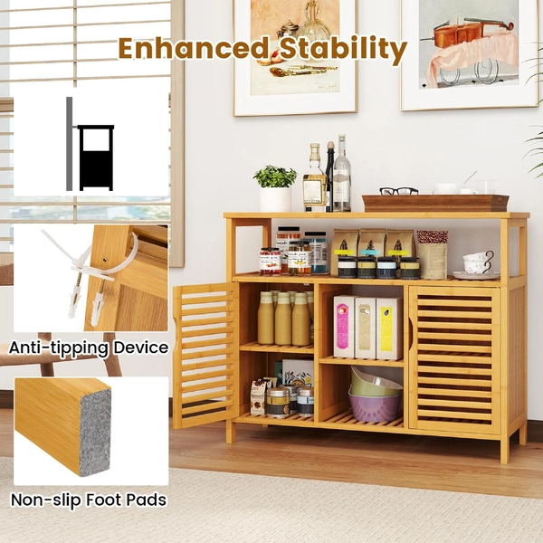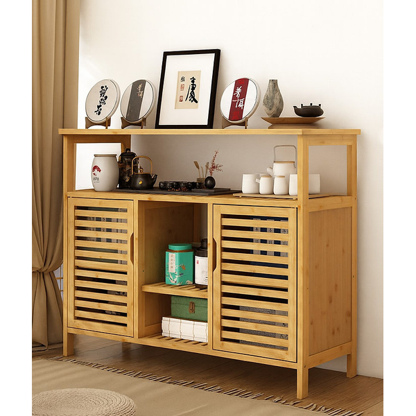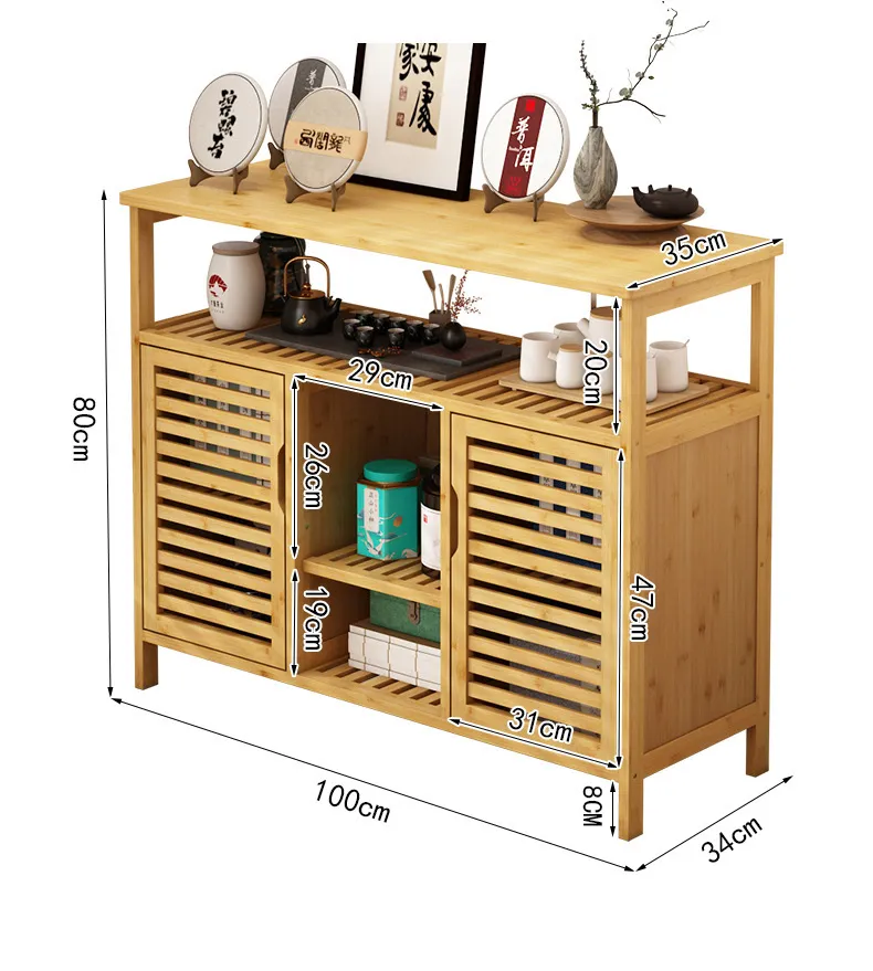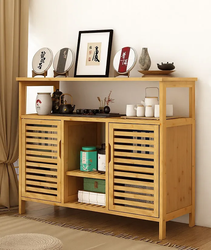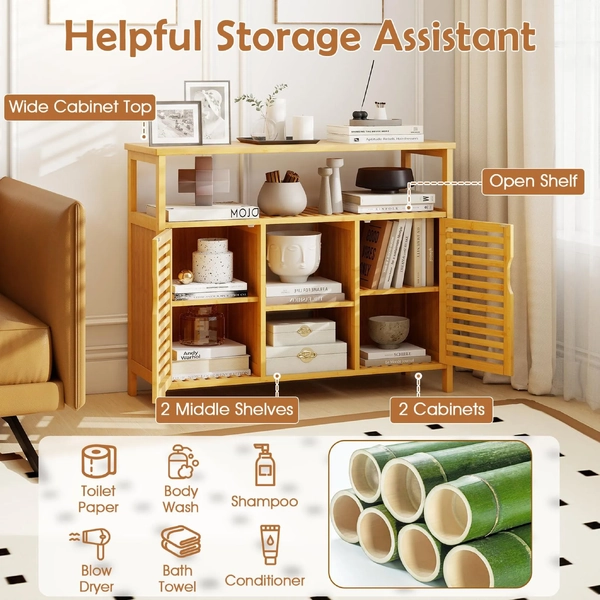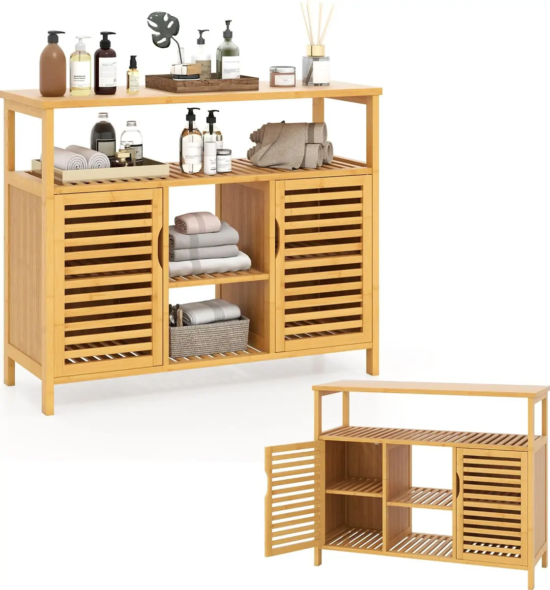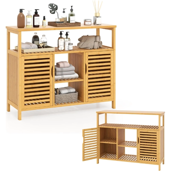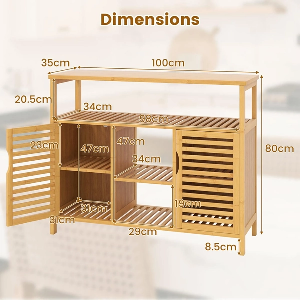 • Louvered doors on the side cabinets, providing you with all the necessary items to stay clean and ventilated