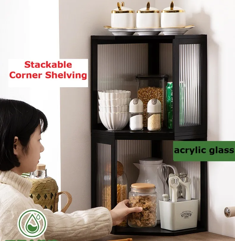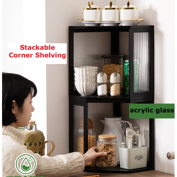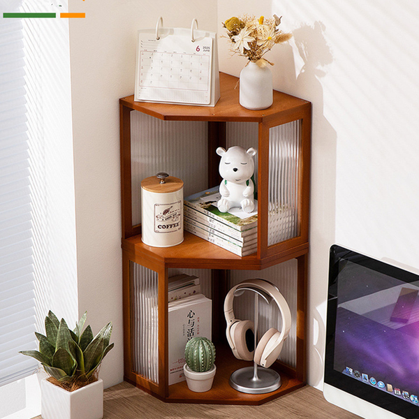 • This stackable corner bookshelf maximizes space while adding a touch of elegance.