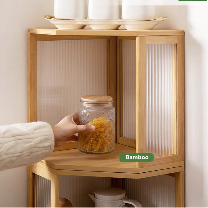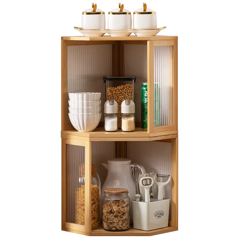 • This bamboo home storage cabinet can be used as a kitchen countertop food cabinet, office bookcase, bedroom storage cabinet