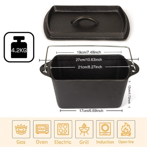 This versatile bread pan works with multiple cooking methods, including gas, oven, electric, grill, and even open fire. Whether you're baking at home or cooking outdoors, this pan adapts to all your needs.