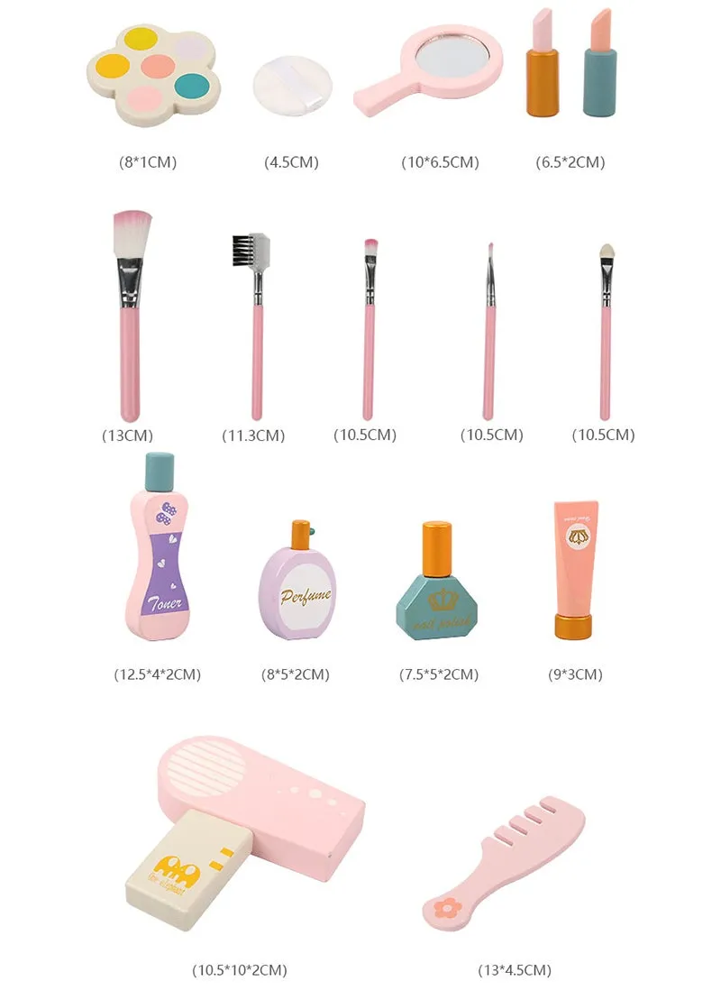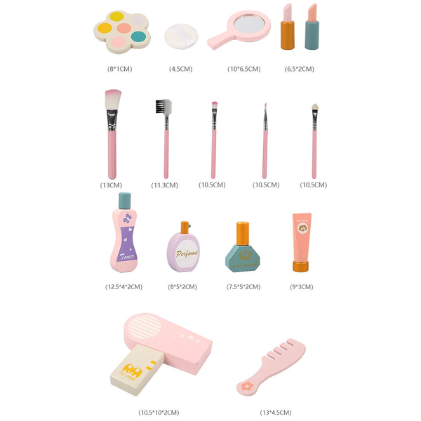 · Comes with 15 dress up cosmetic toys, please refer to photo for deail