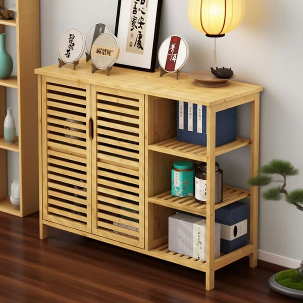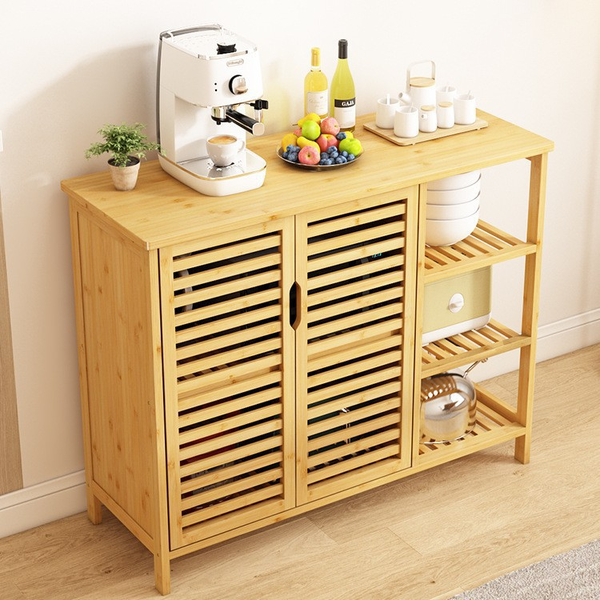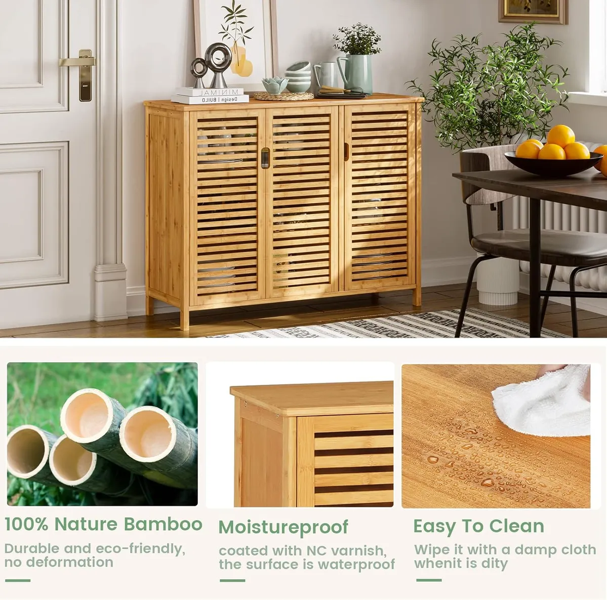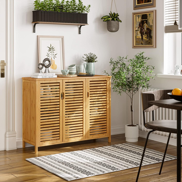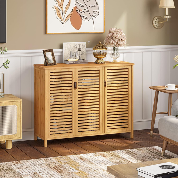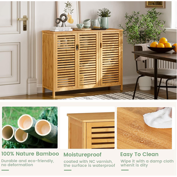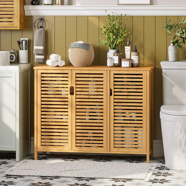 • Louvered doors on the side cabinets, providing you with all the necessary items to stay clean and ventilated