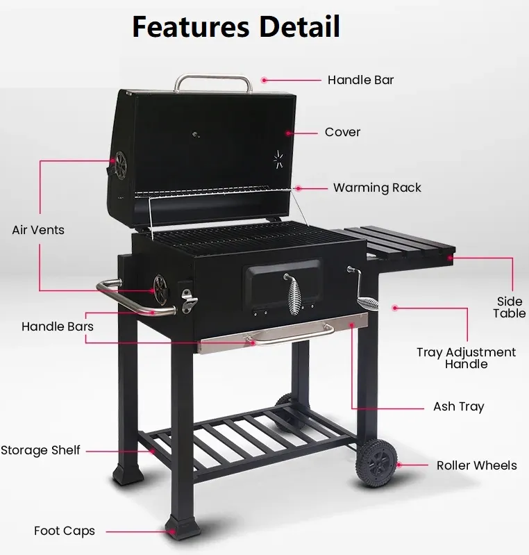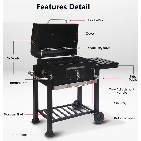 • Adjustable-height charcoal griddle to make easy to control temperature