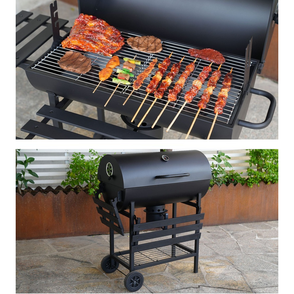• Convenient lower shelf is great for storing charcoal, BBQ tools, rib racks or grilling basket