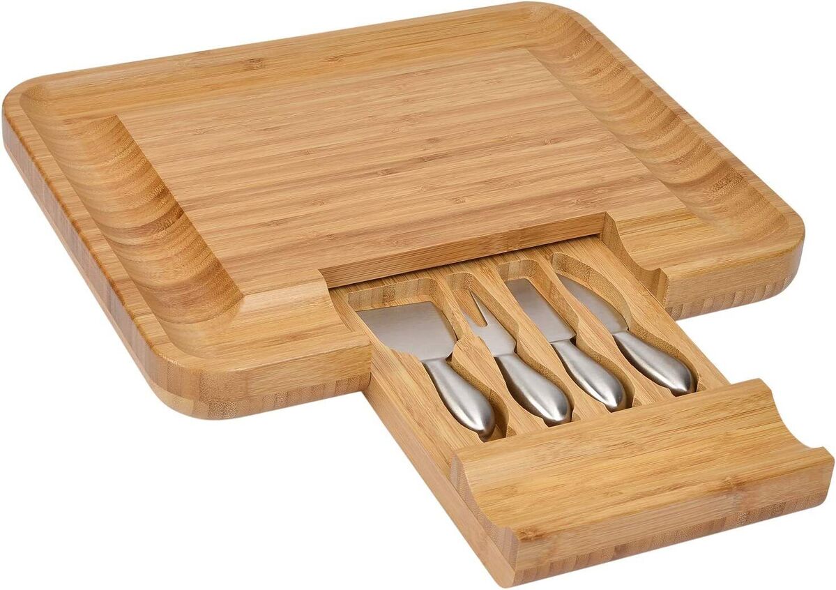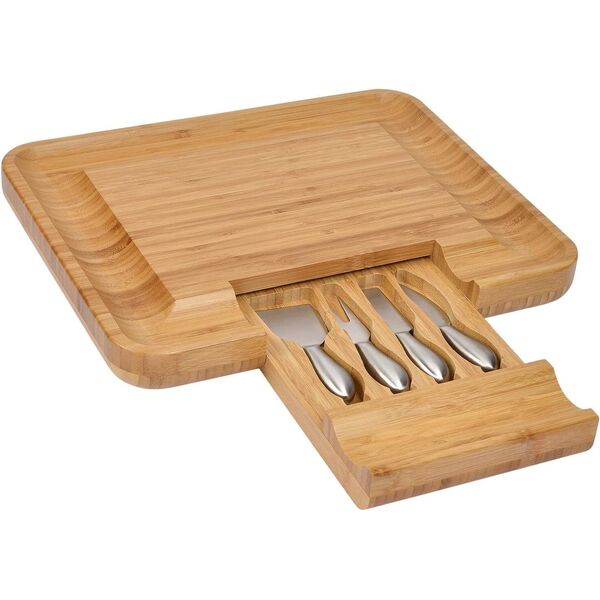 • Cheese Board & Cutlery Sets: Include a natural moso bamboo cheese board with concealed pull out drawer that houses four Brushed Stainless Steel Cheese knives