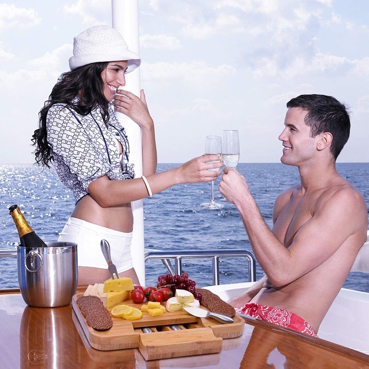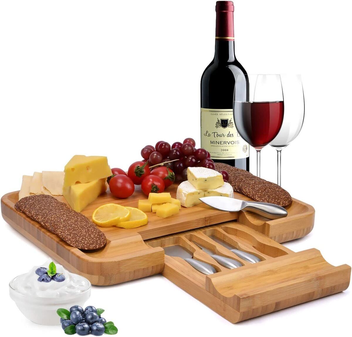 • HIGHEST QUALITY AND SAFE : This Cheese Board made with 100% natural bamboo, sturdy and easy to clean, never crack, BPA-Free. You can confidently entertain your guests and families with this cheese board set